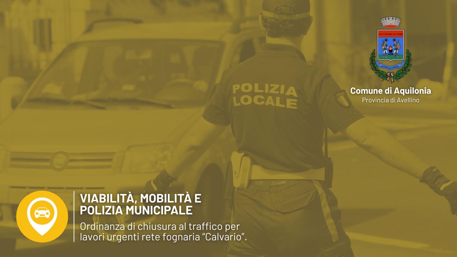 Ordinanza di chiusura temporanea al traffico veicolare per lavori urgenti di ripristino funzionale rete fognaria incrocio “Calvario”.
