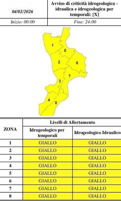 Una nuova perturbazione colpirà oggi, mercoledì 4 febbraio, portando piogge diffuse e temporali su tutta la regione. La Protezione Civile ha emesso allerta gialla su tutto il territorio.