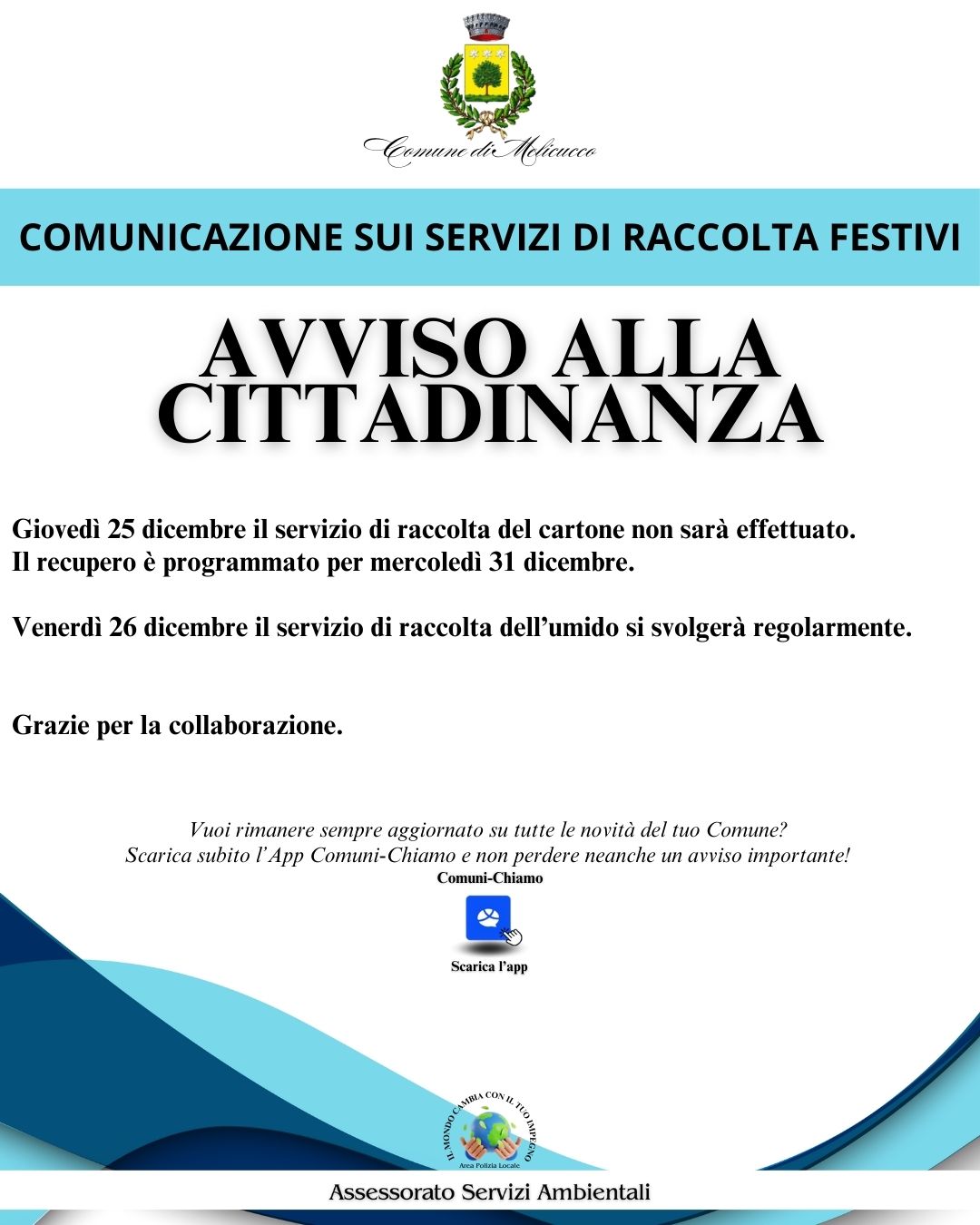 Comunicazione sui servizi di raccolta - festività natalizie