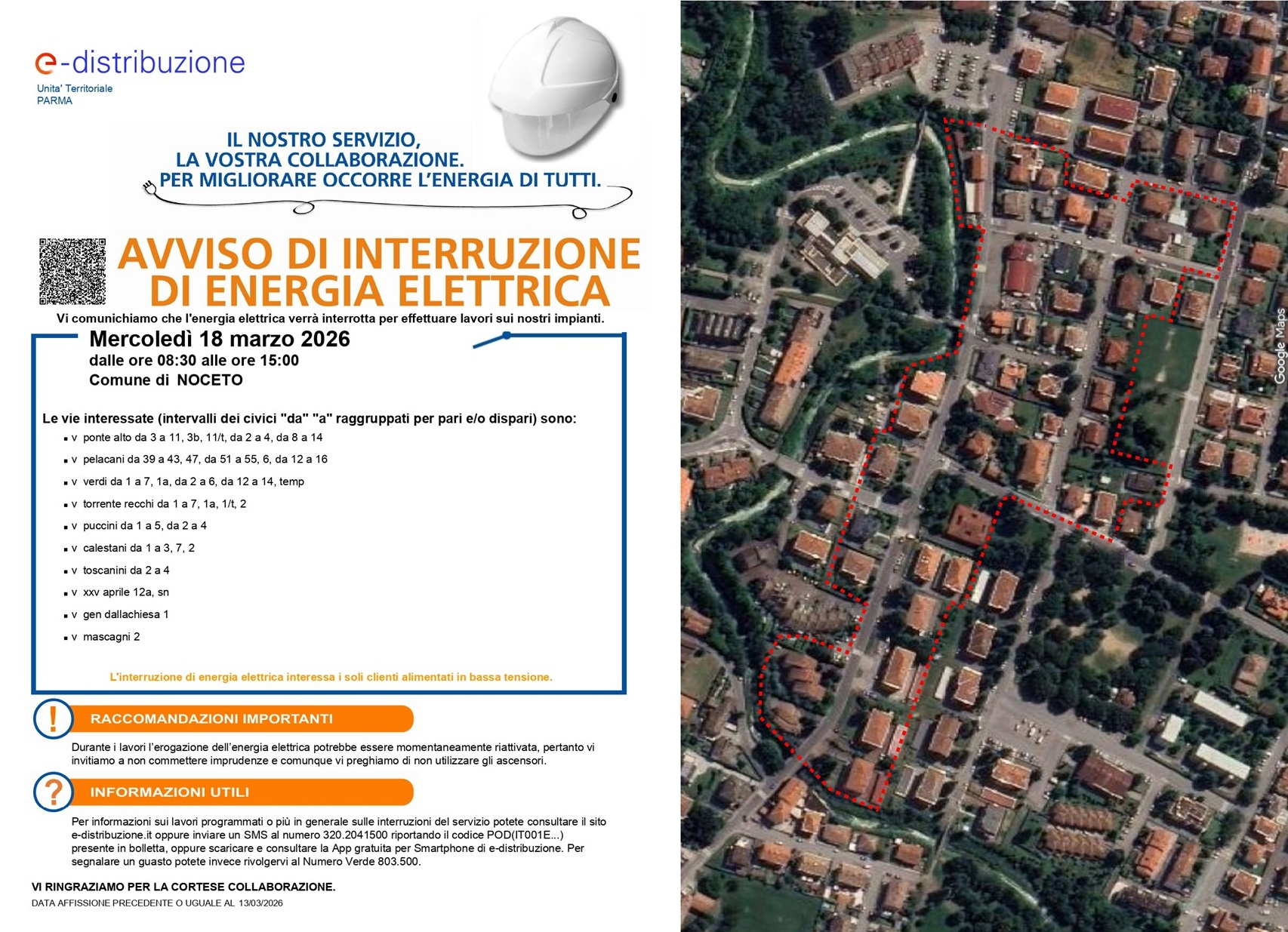 Avviso interruzione del servizio elettrico il 18 marzo dalle ore 08.30 alle ore 15.00 nelle vie sotto indicate. Restituzione del normale servizio in anticipo nel caso in cui le operazioni terminassero...