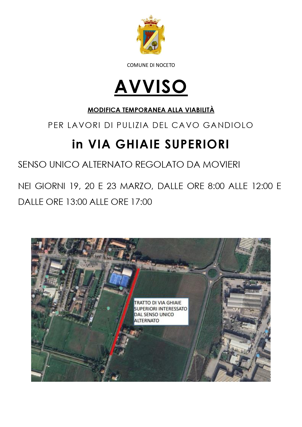 Nei giorni 19, 20 e 23 marzo, dalle ore 8:00 alle 12:00 e dalle ore 13:00 alle ore 17:00, modifica temporanea alla viabilità in via Ghiaie Superiori per ...