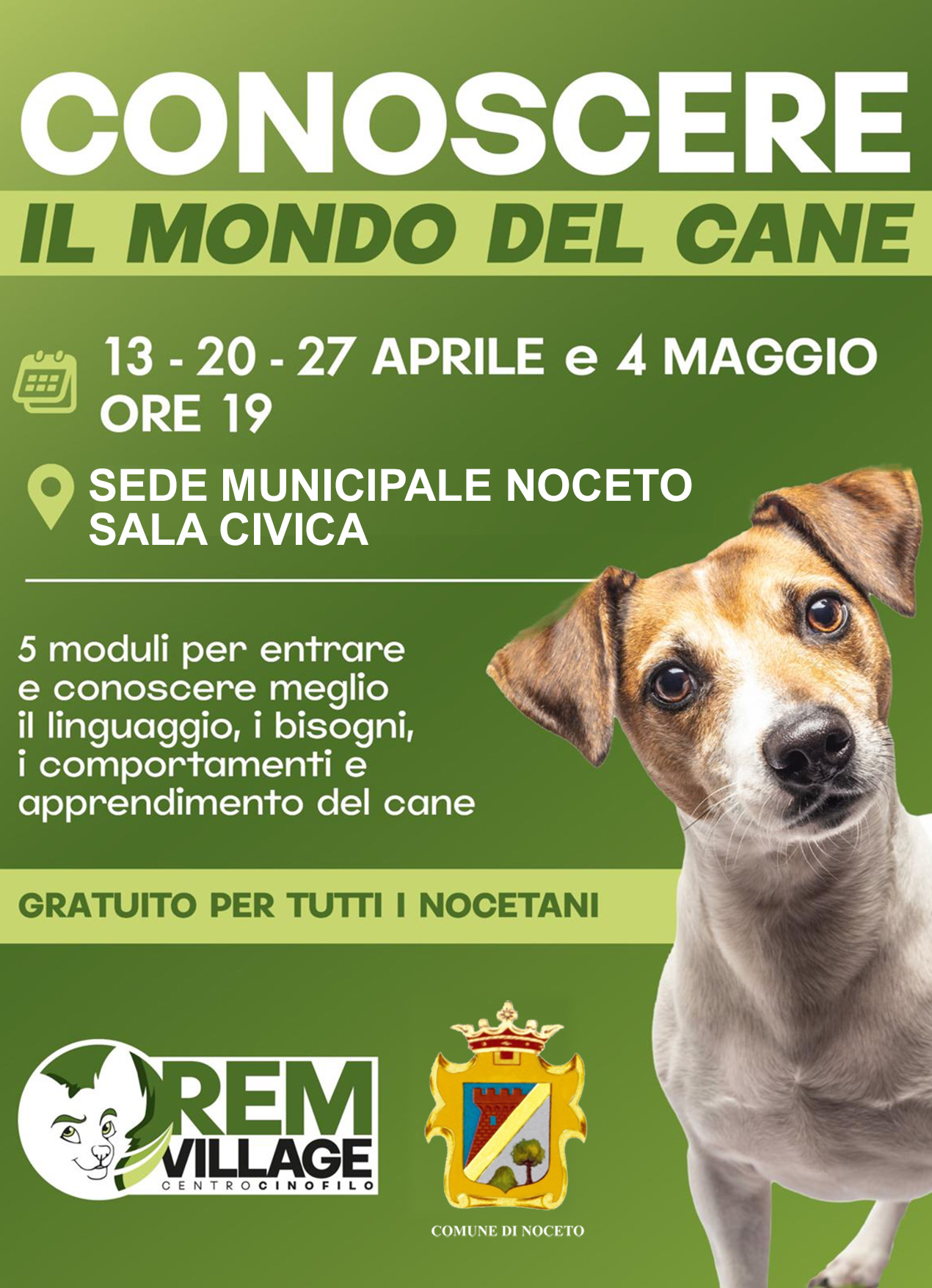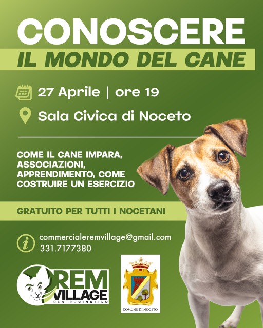 Conoscere il mondo del cane 3° incontro 27 aprile ore 19 nella sala civica del municipio a Noceto.