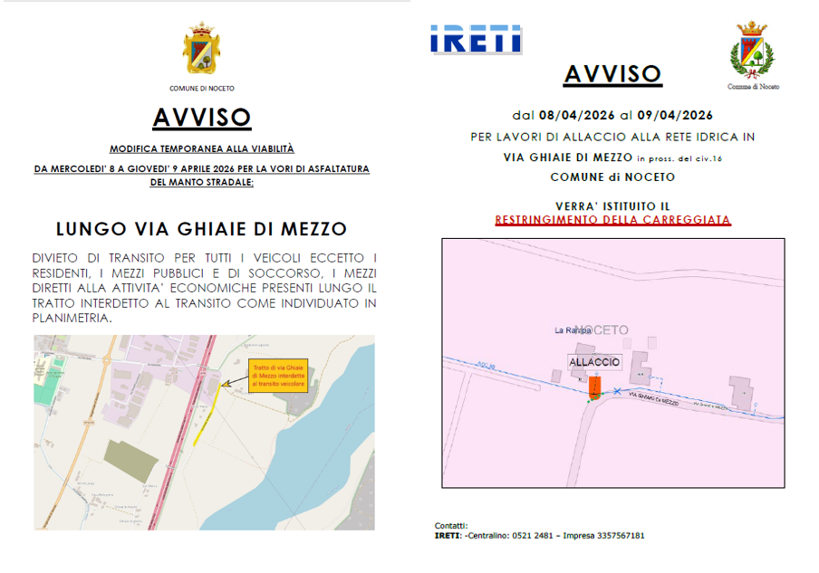 L’ordinanza completa disponibile sul sito del Comune di Noceto.