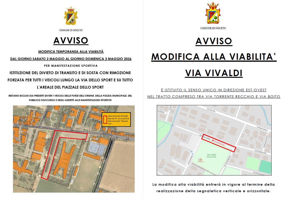 Via Vivaldi, via e piazzale dello Sport: cambia temporaneamente la viabilità